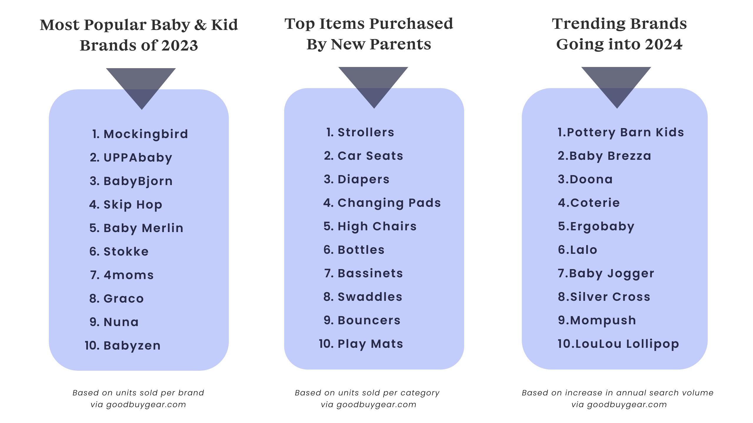Most Popular Baby & Kid Brands of 2023 (based on units sold per brand via goodbuygear.com)